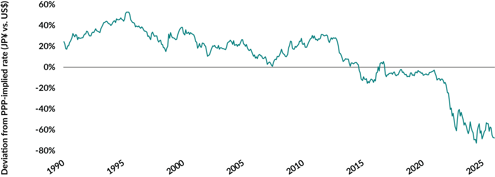 Japanese yen vs. the US$ - Deviation from purchasing power parity implied rate