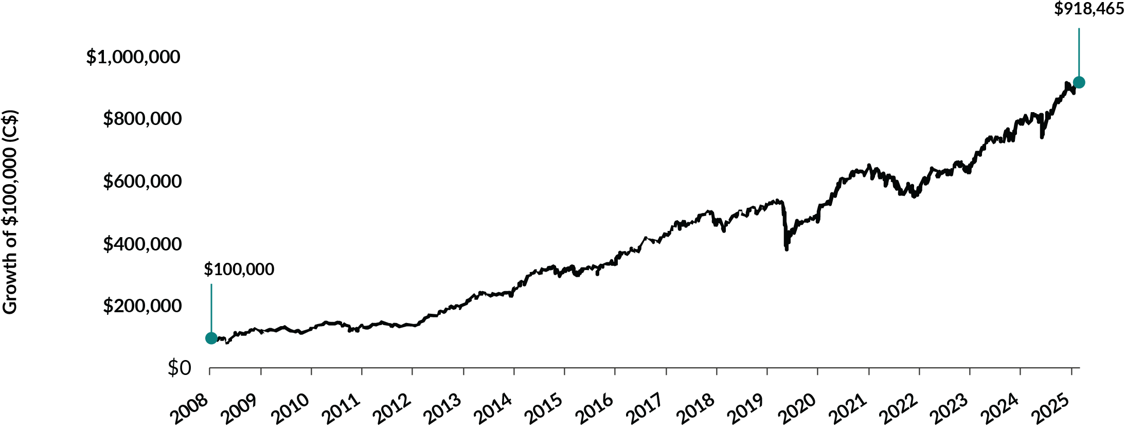 Learning from these mistakes has given us an edge. Marrying that edge with the strength of our investment approach has resulted in Cymbria compounding your hard-earned savings at a rate of 13.8% over the last 17 years, or since inception. This has turned a $100,000 investment in Cymbria into $918,465 dollars today.*