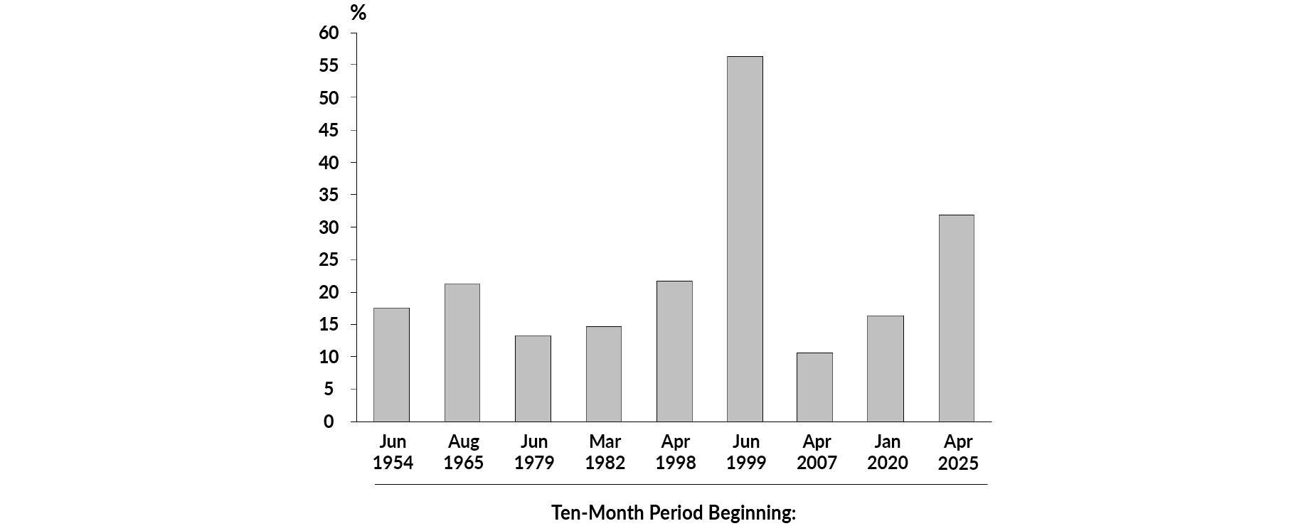 So what? Unfortunately, those top 10 securities were likely very expensive since they’d done so well between 2019 and 2025. The top 10 holdings accounted for between 53% and 67% of the market’s returns in the last three of those years. Prior to 2019, the only two times that the top 10 were responsible for so much of the index’s returns were in 1999 and 2007, right before the Dot.com bubble and the Global Financial Crisis.