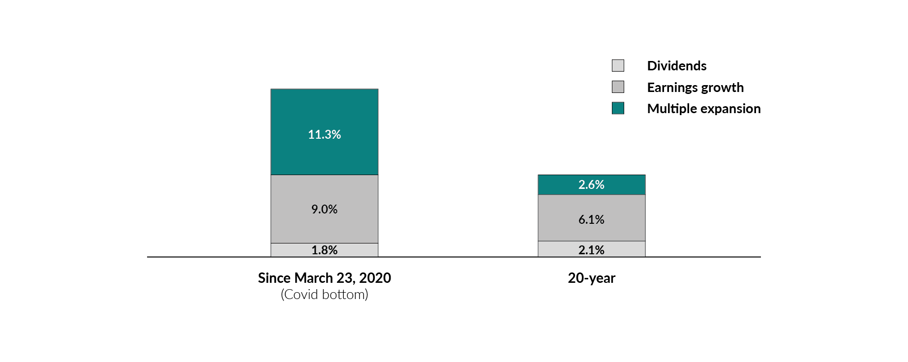 S&P 500 Index total annualized return decomposition
