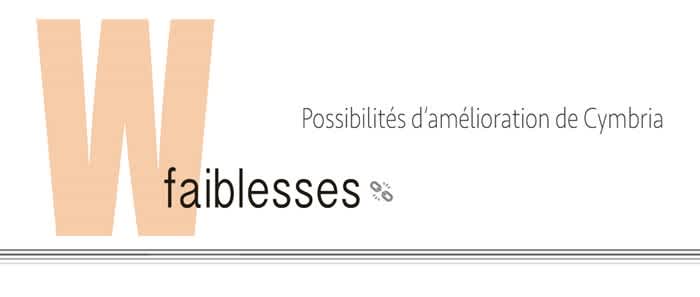 Même s’il est parfois beaucoup trop facile d’être satisfait de soi, nous estimons que les forces de Cymbria l’emportement nettement sur ses points négatifs. Nous n’aurions jamais lancé Cymbria ni engagé autant de notre propre argent si nous avions pensé autrement. Nous constatons que nous portons également une attention particulière aux menaces pour notre entreprise et que nous faisons notre possible pour corriger nos lacunes.